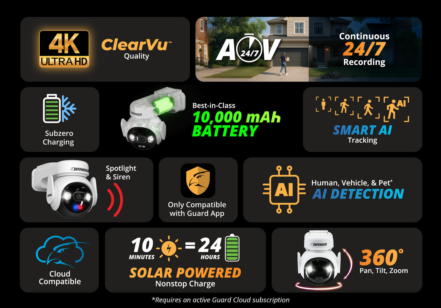 Solar Powered 4K AI Guard Ultra-Charge PTZ Wireless Security Camera with AOV