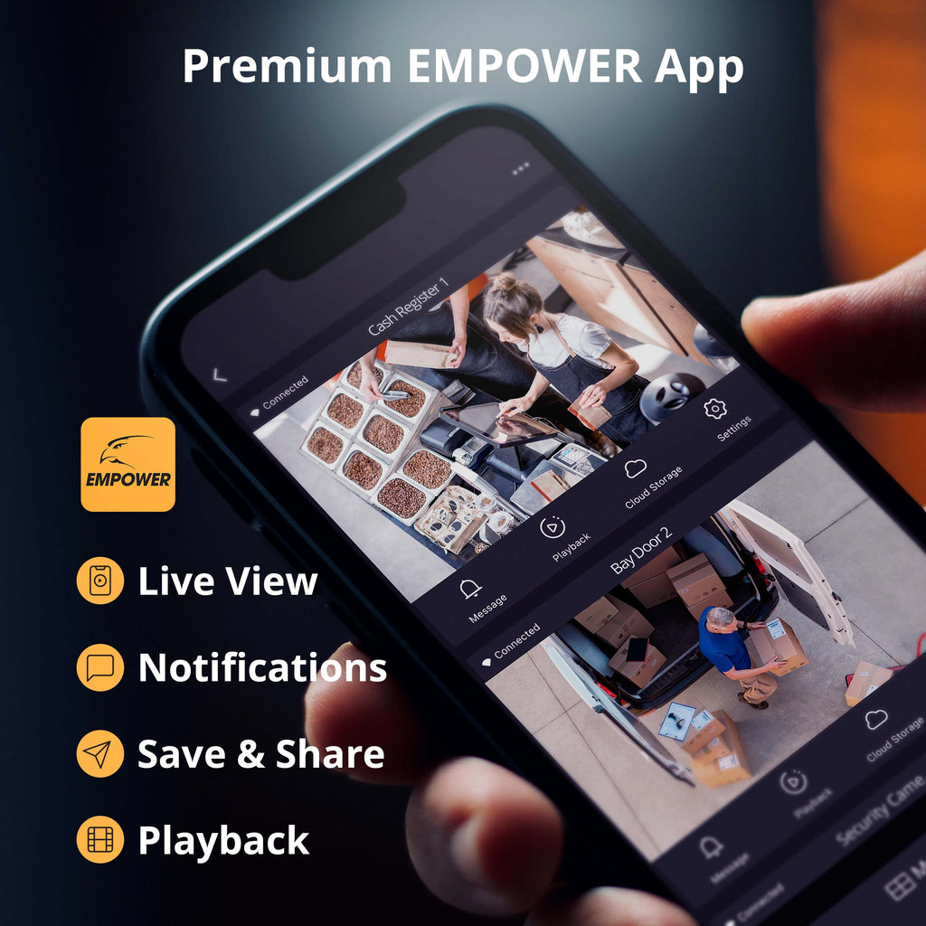 Enjoy live viewing, instant notifications, and instant playback. Save and share your footage with the simple-to-use, highly-rated Defender Empower app.